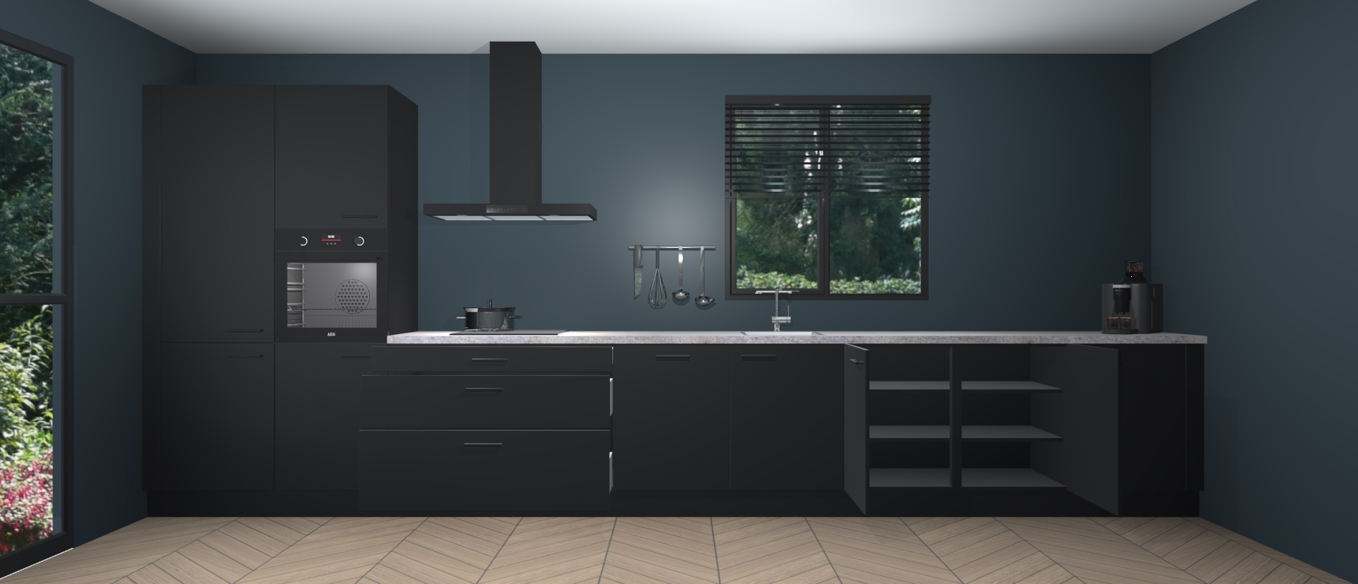 Inclusief plinten, stelpoten en werkblad