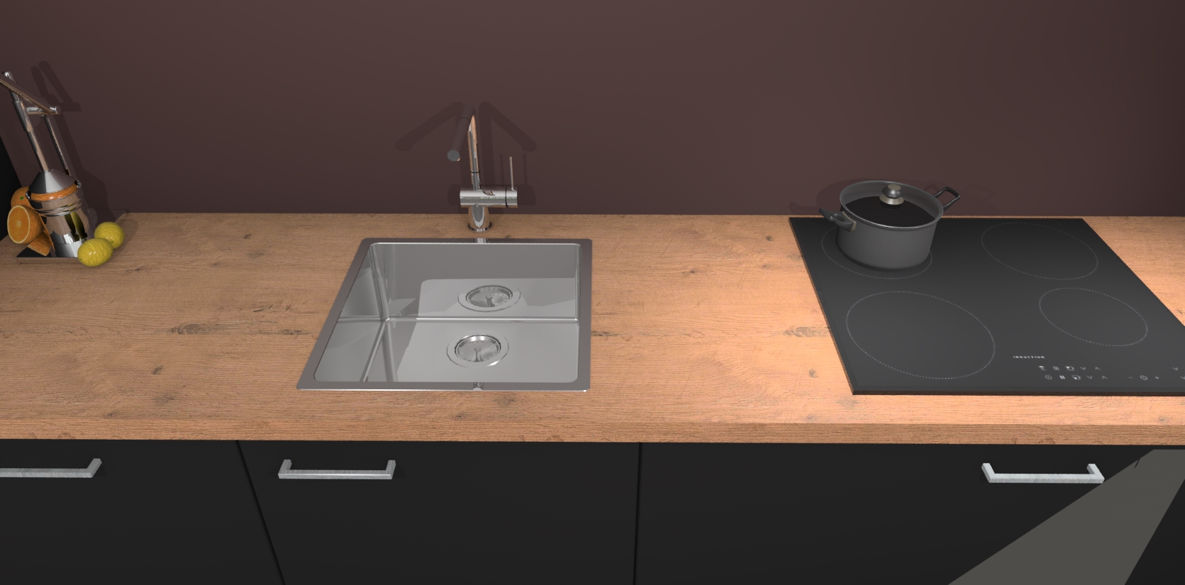 - Uitsparing van kookplaat, spoelbak en kraan dient u zelf te verzorgen.