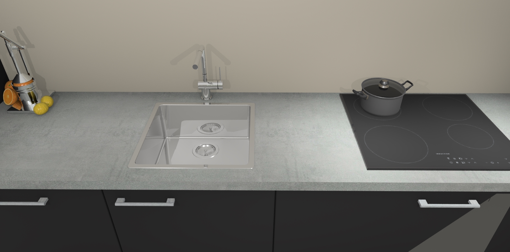 - Uitsparing van kookplaat, spoelbak en kraan dient u zelf te verzorgen.