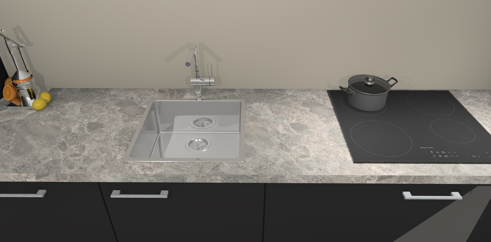 - Uitsparing van kookplaat, spoelbak en kraan dient u zelf te verzorgen.