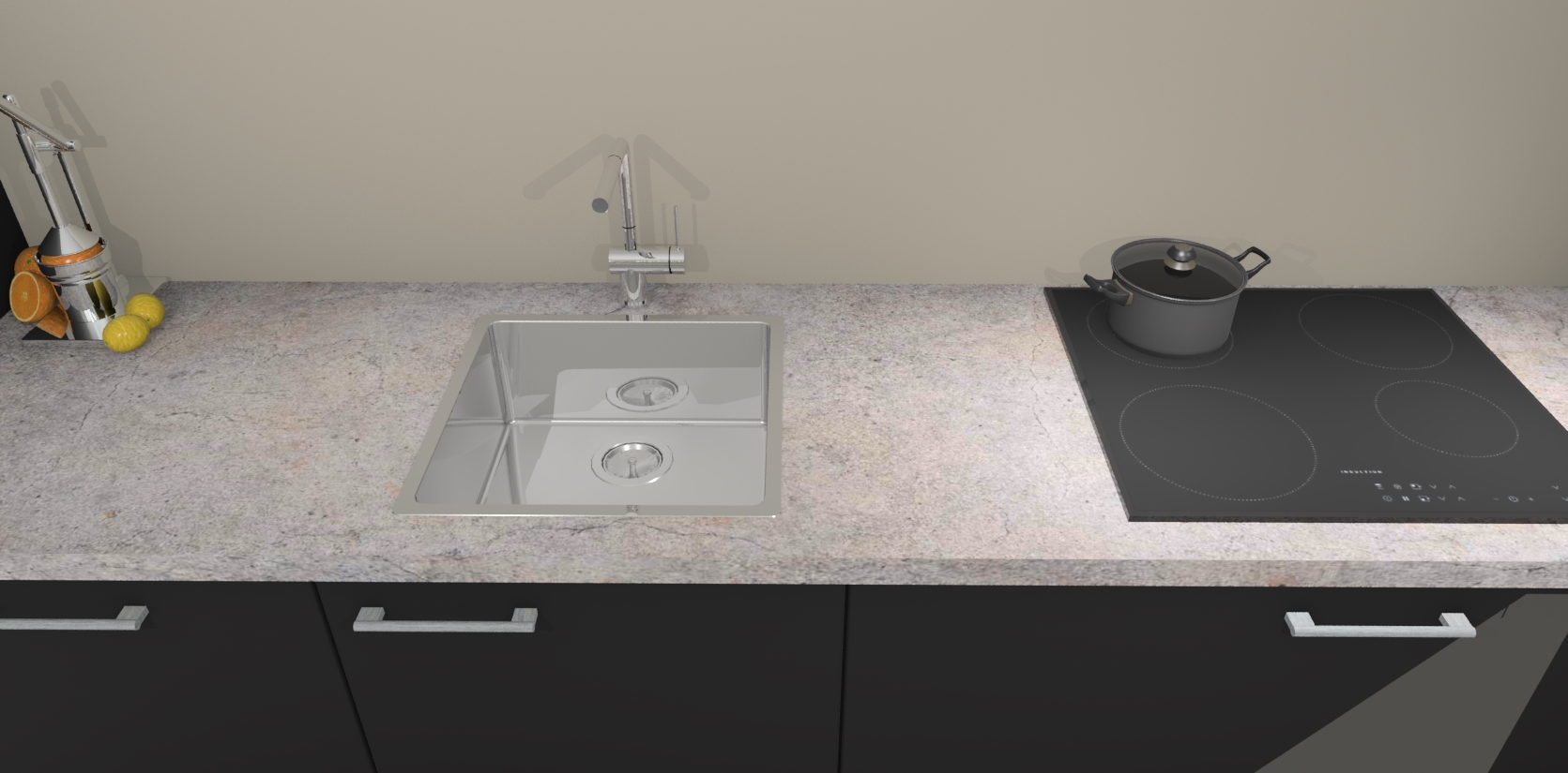 - Uitsparing van kookplaat, spoelbak en kraan dient u zelf te verzorgen.