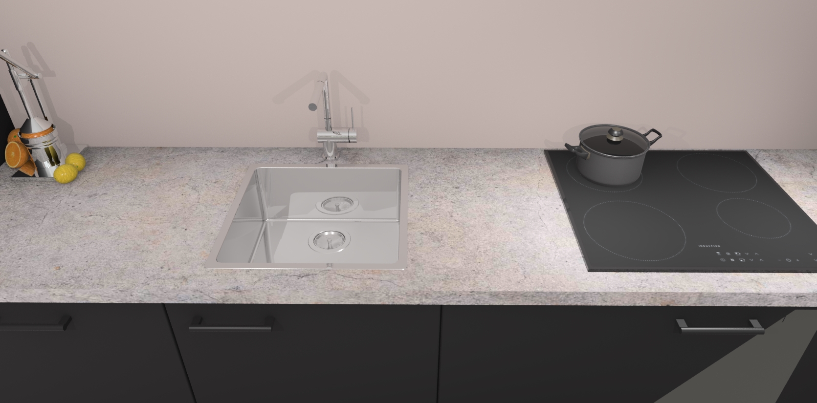 - Uitsparing van kookplaat, spoelbak en kraan dient u zelf te verzorgen.