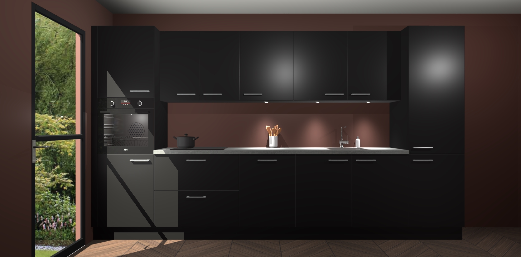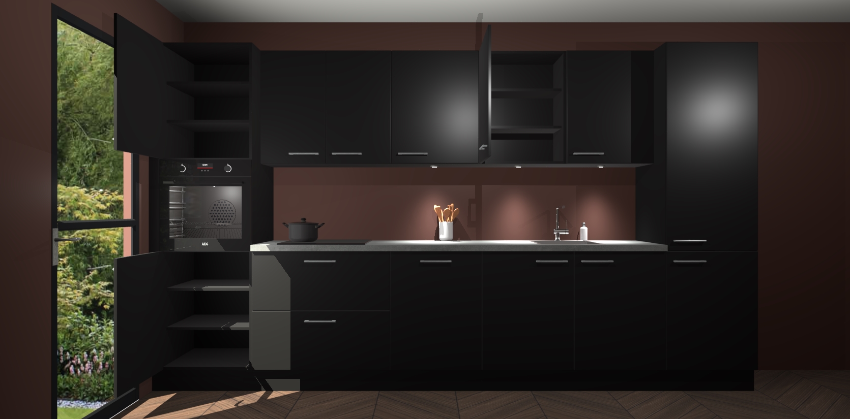 Dit is de perfecte keuken voor wie op zoek is naar een luxueuze stijl zonder zijn portemonnee te legen! Het chique ontwerp van de zwarte keuken Wels voegt dat vleugje verfijning toe aan elk huis. Het gemak van voorgemonteerde kasten bespaart u talloze uren tijd en energie, zodat u veel sneller dan verwacht kunt beginnen te genieten van uw prachtige nieuwe keuken. Bovendien bedraagt de levertijd slechts 7 weken.