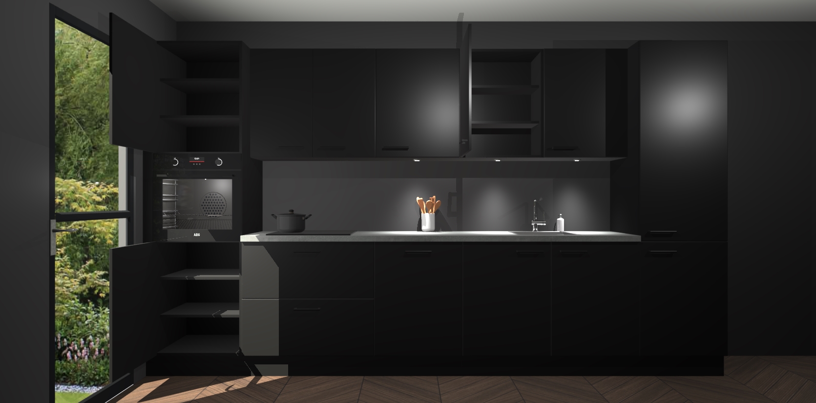 Dit is de perfecte keuken voor wie op zoek is naar een luxueuze stijl zonder zijn portemonnee te legen! Het chique ontwerp van de zwarte keuken Wels voegt dat vleugje verfijning toe aan elk huis. Het gemak van voorgemonteerde kasten bespaart u talloze uren tijd en energie, zodat u veel sneller dan verwacht kunt beginnen te genieten van uw prachtige nieuwe keuken. Bovendien bedraagt de levertijd slechts 7 weken.