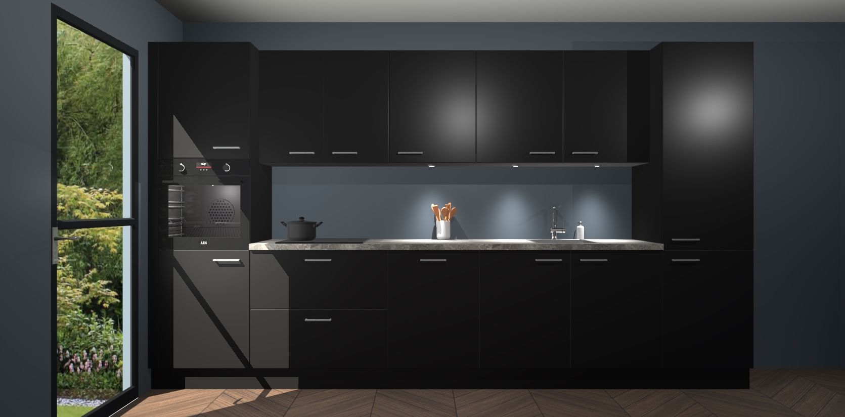 Dit is de perfecte keuken voor wie op zoek is naar een luxueuze stijl zonder zijn portemonnee te legen! Het chique ontwerp van de zwarte keuken Wels voegt dat vleugje verfijning toe aan elk huis. Het gemak van voorgemonteerde kasten bespaart u talloze uren tijd en energie, zodat u veel sneller dan verwacht kunt beginnen te genieten van uw prachtige nieuwe keuken. Bovendien bedraagt de levertijd slechts 7 weken.