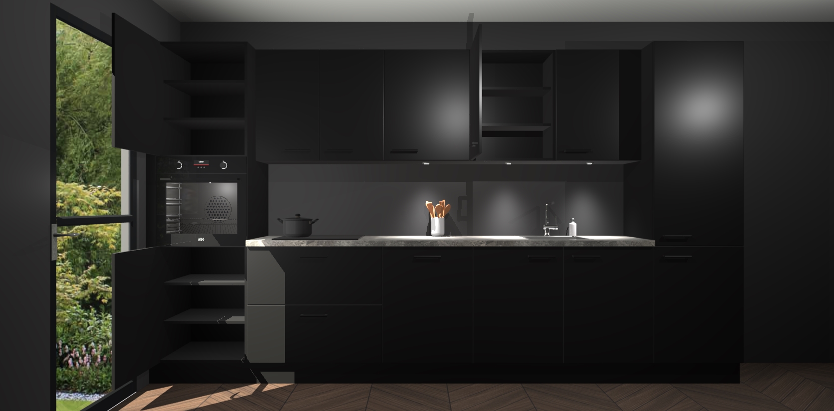Dit is de perfecte keuken voor wie op zoek is naar een luxueuze stijl zonder zijn portemonnee te legen! Het chique ontwerp van de zwarte keuken Wels voegt dat vleugje verfijning toe aan elk huis. Het gemak van voorgemonteerde kasten bespaart u talloze uren tijd en energie, zodat u veel sneller dan verwacht kunt beginnen te genieten van uw prachtige nieuwe keuken. Bovendien bedraagt de levertijd slechts 7 weken.