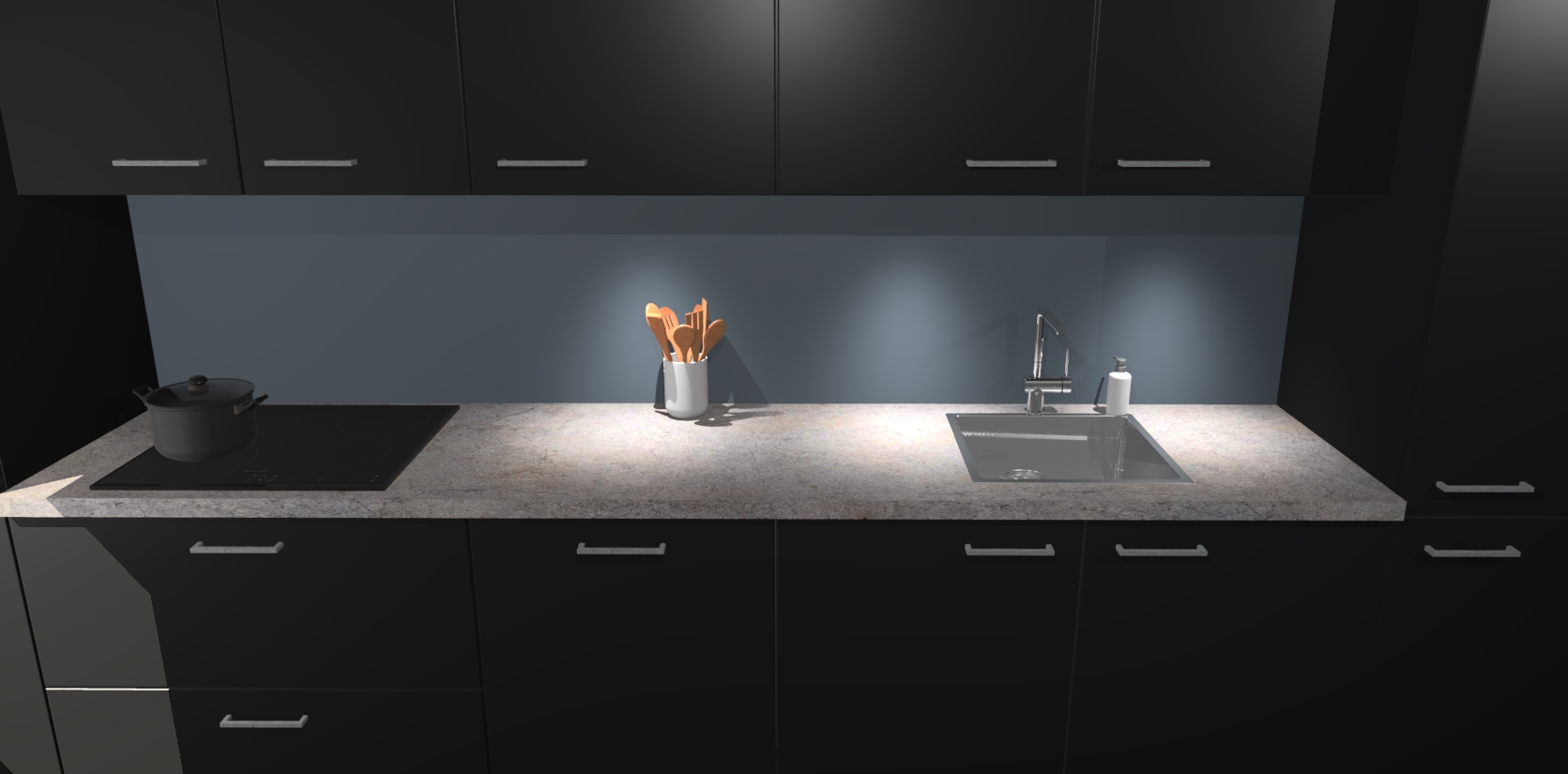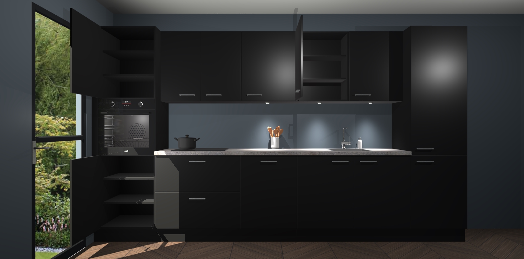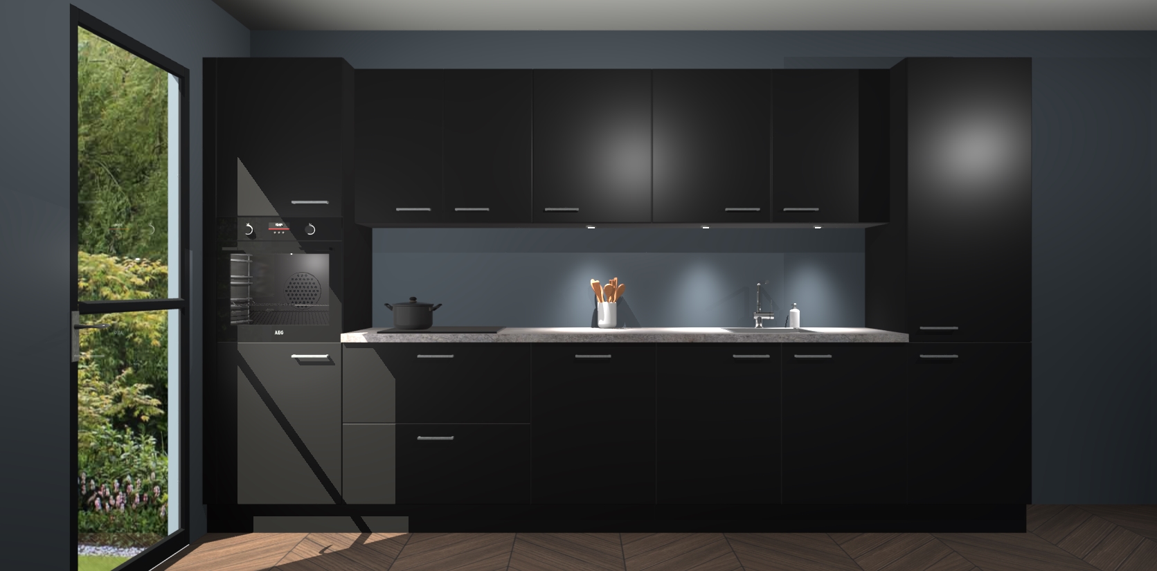 Dit is de perfecte keuken voor wie op zoek is naar een luxueuze stijl zonder zijn portemonnee te legen! Het chique ontwerp van de zwarte keuken Wels voegt dat vleugje verfijning toe aan elk huis. Het gemak van voorgemonteerde kasten bespaart u talloze uren tijd en energie, zodat u veel sneller dan verwacht kunt beginnen te genieten van uw prachtige nieuwe keuken. Bovendien bedraagt de levertijd slechts 7 weken.