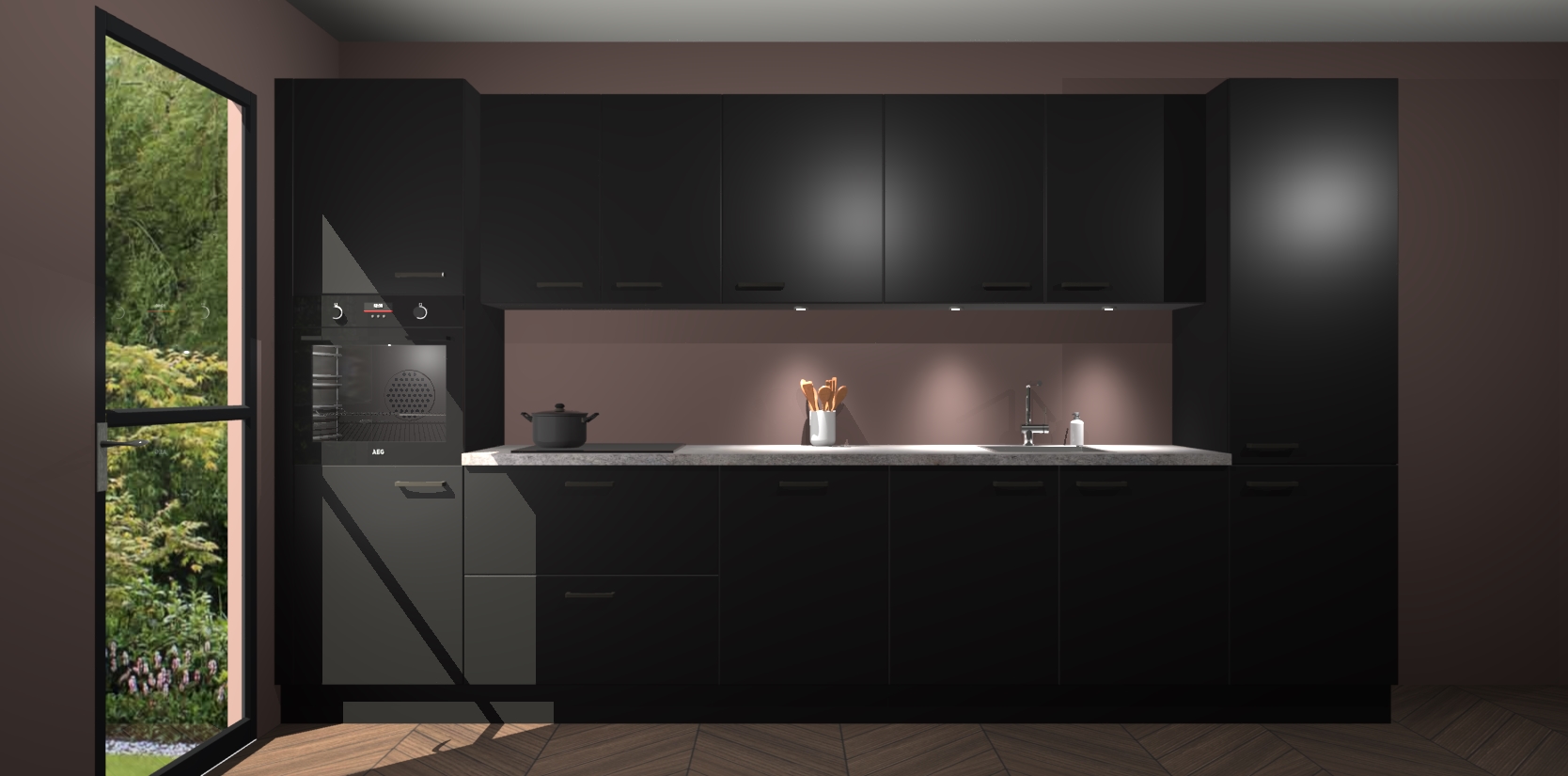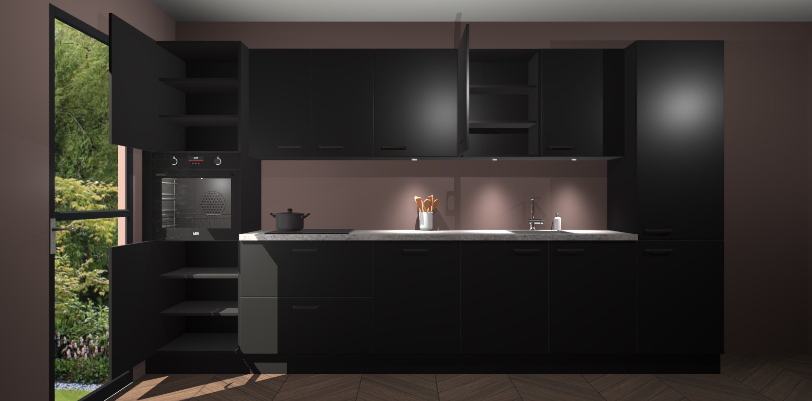 Dit is de perfecte keuken voor wie op zoek is naar een luxueuze stijl zonder zijn portemonnee te legen! Het chique ontwerp van de zwarte keuken Wels voegt dat vleugje verfijning toe aan elk huis. Het gemak van voorgemonteerde kasten bespaart u talloze uren tijd en energie, zodat u veel sneller dan verwacht kunt beginnen te genieten van uw prachtige nieuwe keuken. Bovendien bedraagt de levertijd slechts 7 weken.