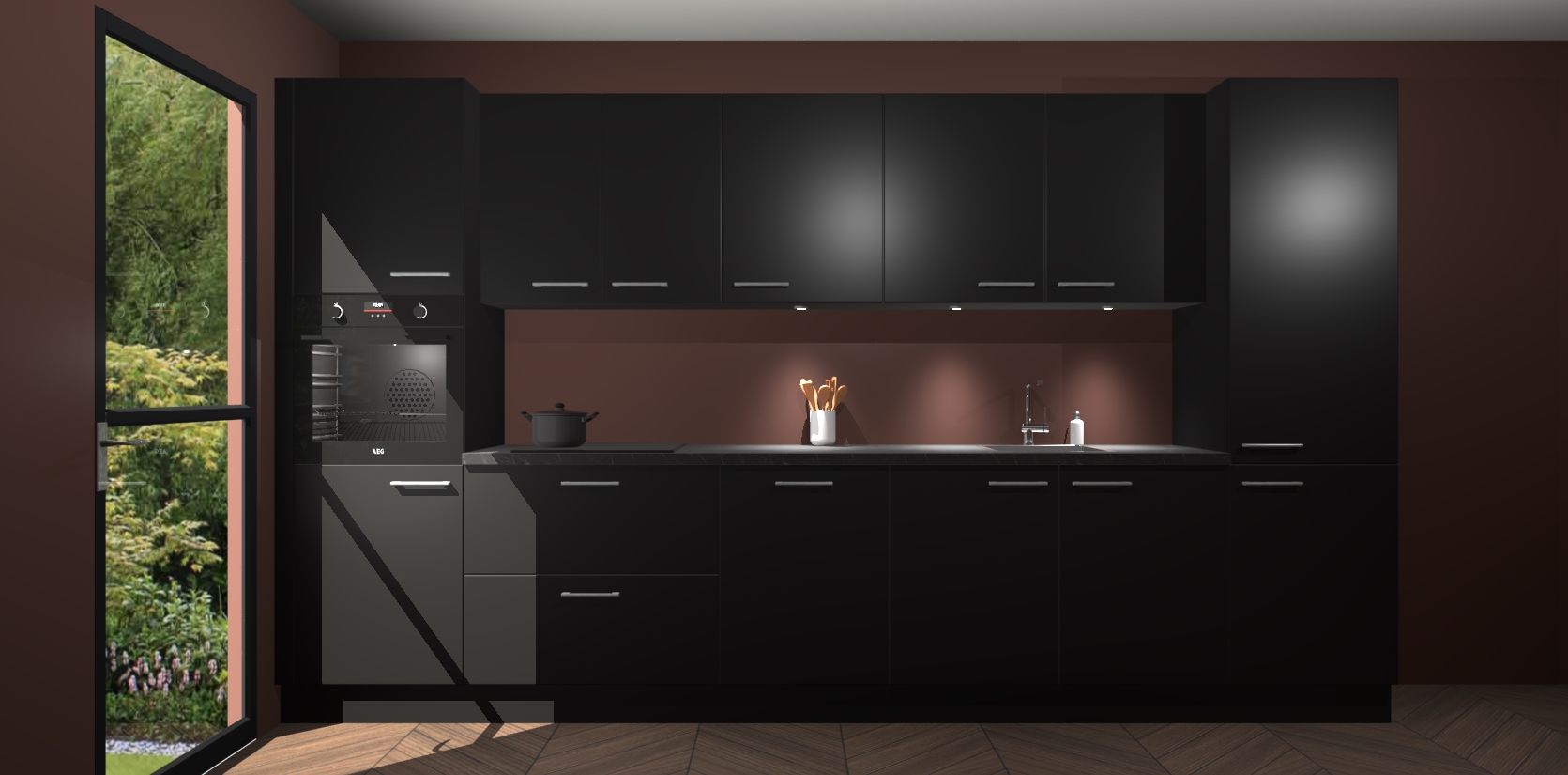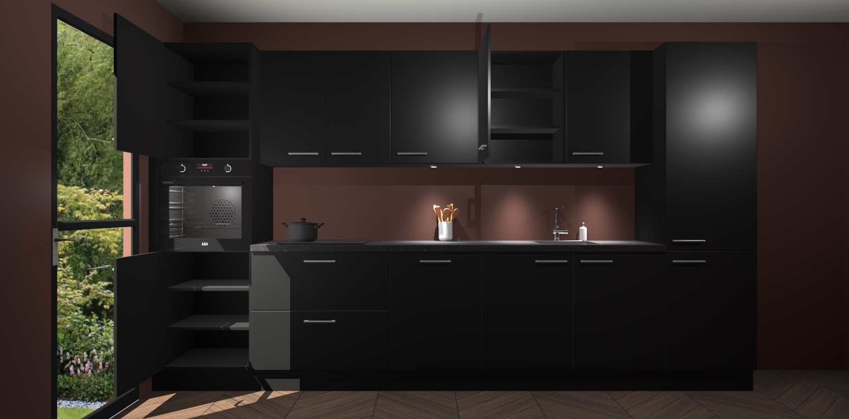 Dit is de perfecte keuken voor wie op zoek is naar een luxueuze stijl zonder zijn portemonnee te legen! Het chique ontwerp van de zwarte keuken Wels voegt dat vleugje verfijning toe aan elk huis. Het gemak van voorgemonteerde kasten bespaart u talloze uren tijd en energie, zodat u veel sneller dan verwacht kunt beginnen te genieten van uw prachtige nieuwe keuken. Bovendien bedraagt de levertijd slechts 7 weken.
