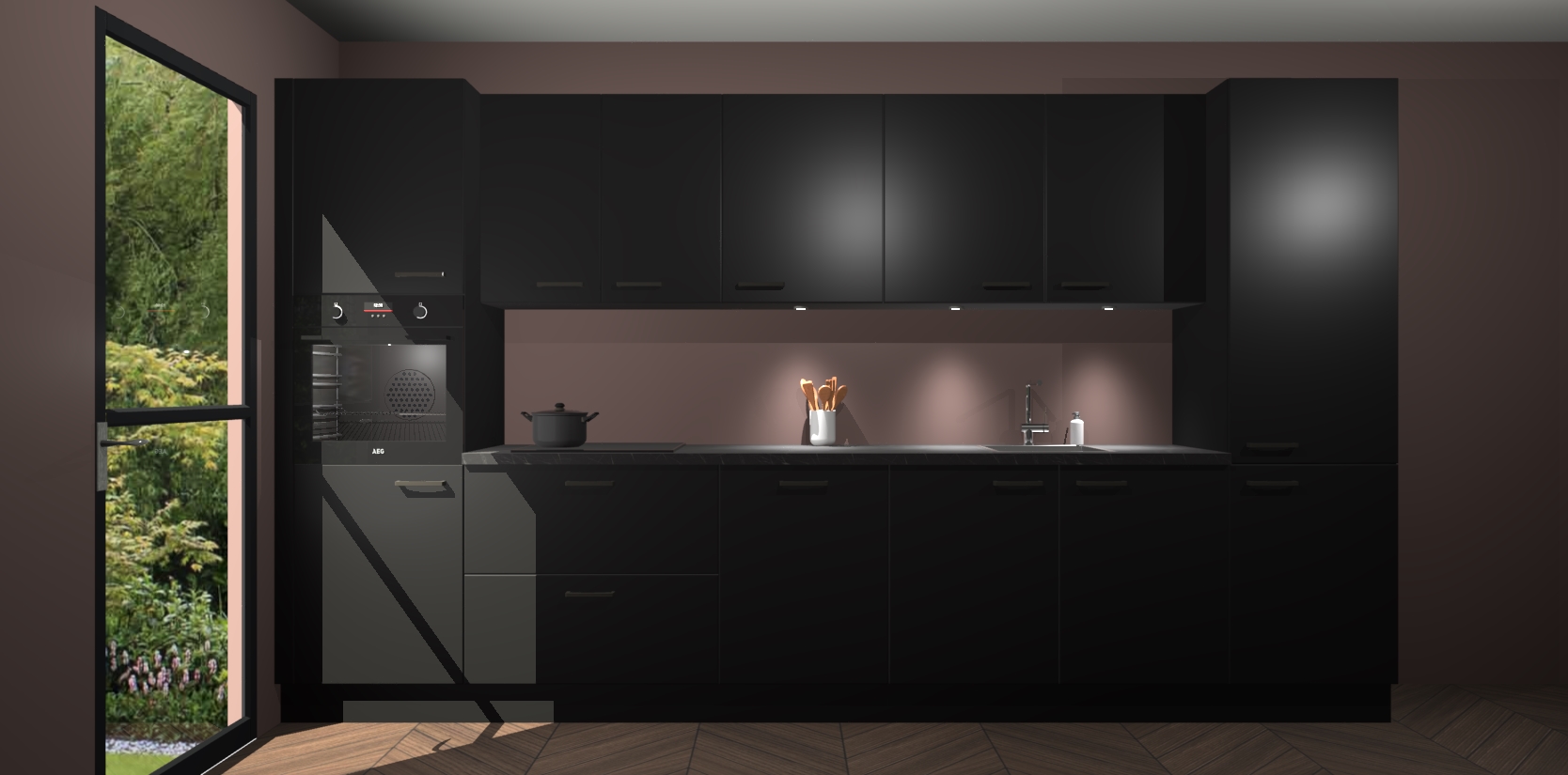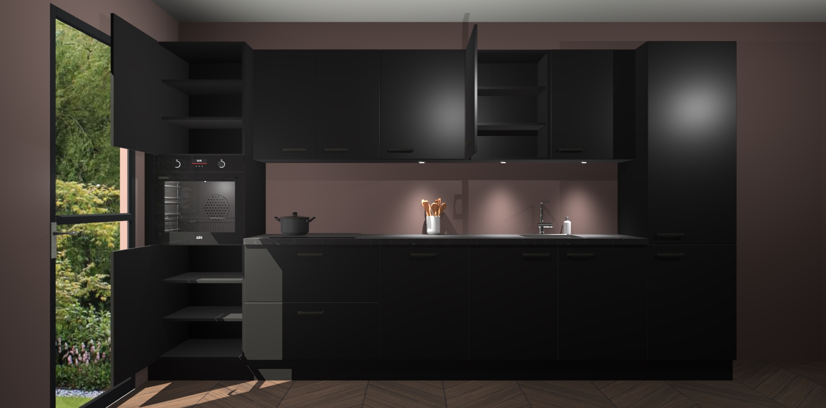Dit is de perfecte keuken voor wie op zoek is naar een luxueuze stijl zonder zijn portemonnee te legen! Het chique ontwerp van de zwarte keuken Wels voegt dat vleugje verfijning toe aan elk huis. Het gemak van voorgemonteerde kasten bespaart u talloze uren tijd en energie, zodat u veel sneller dan verwacht kunt beginnen te genieten van uw prachtige nieuwe keuken. Bovendien bedraagt de levertijd slechts 7 weken.