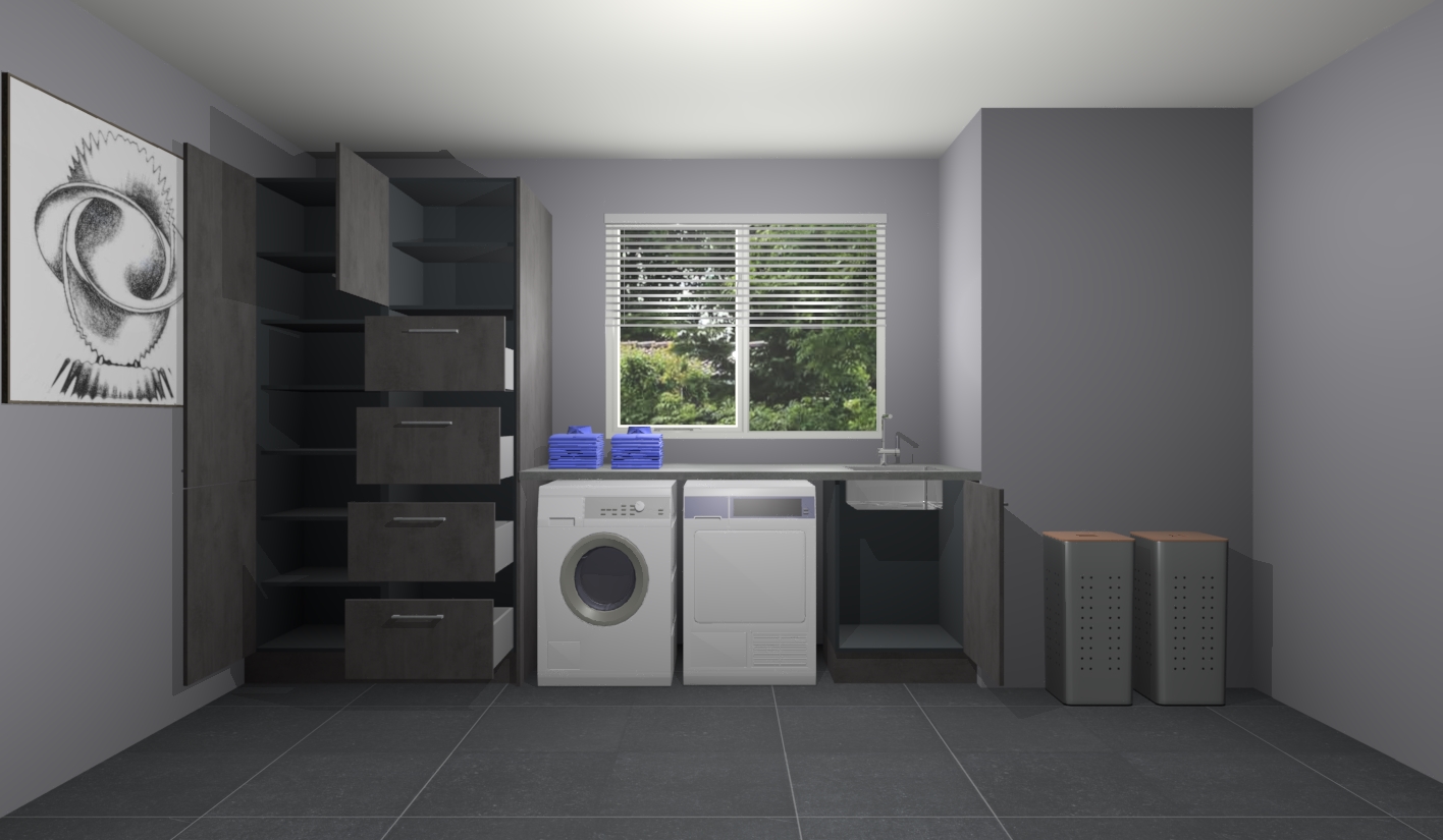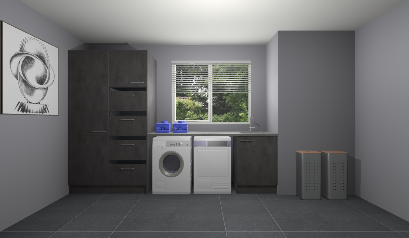 Welkom bij de Beton Antraciet waskamer Dodoma. Deze prachtige waskamer zal de komende jaren het middelpunt van wassen zijn. Bovendien geeft de stoere grijze kleur elke ruimte een uitnodigende en tijdloze uitstraling.