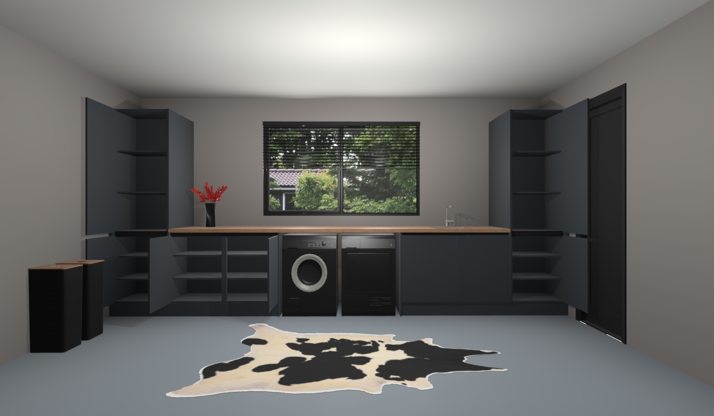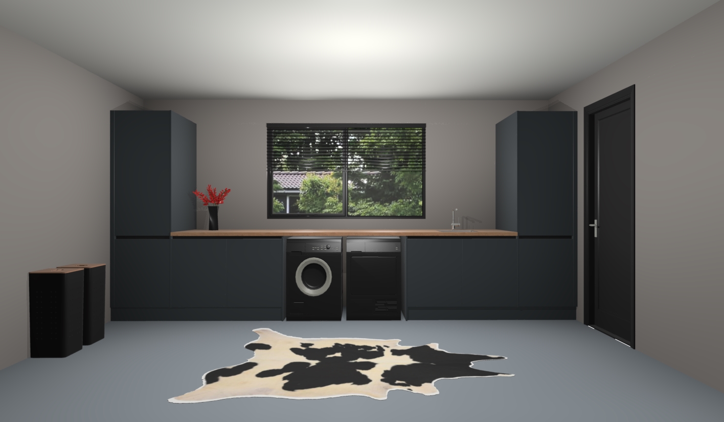 Welkom bij de Onyxgrijze greeploze waskamer Brunei. Deze prachtige waskamer zal de komende jaren het middelpunt van wassen zijn. Bovendien geeft deze stoere grijze kleur elke ruimte een uitnodigende en tijdloze uitstraling.
